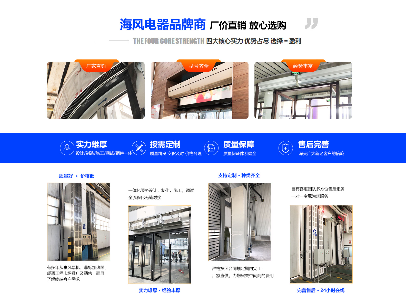 多年從事空調、風幕機、非標加熱器產品銷售,具有良好商業信譽和服務能力的經銷商網絡做為企業發展的源泉?!翱蛻舻男枨缶褪呛oL人的追求”做為海風人的服務理念 ...